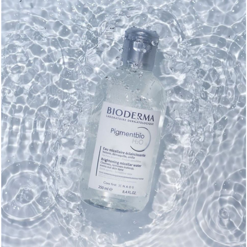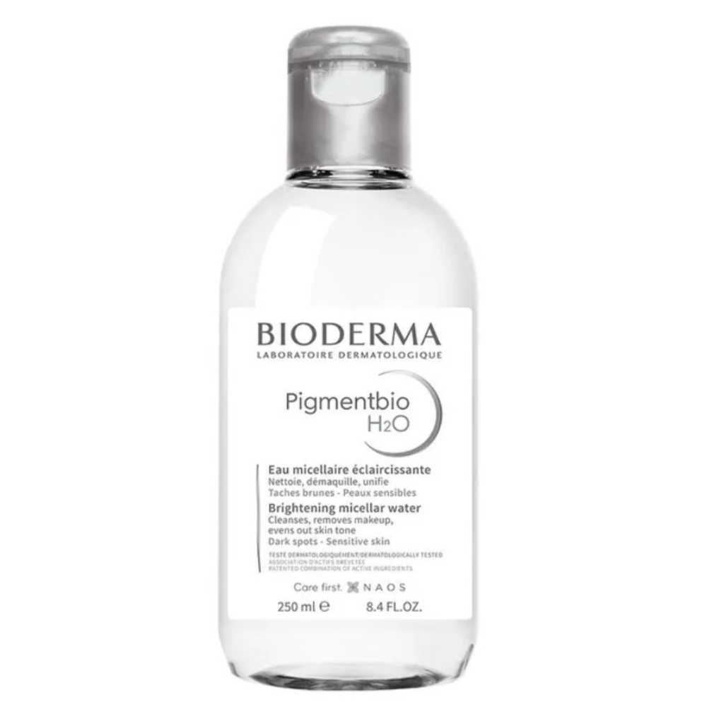 - Bioderma Pigmentbio H2O is a cleansing micellar water especially formulated for hyperpigmented skin. Because of its patented combination of active ingredients, which regulate the biological mechanisms that cause dark spots, this cleansing product is the perfect first step in any depigmenting skincare routine