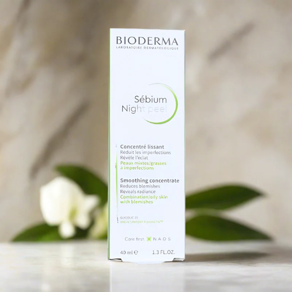 Bioderma Sebium Night Peel Cream (40ml) is an exfoliating and rejuvenating night cream specially formulated for oily and acne-prone skin. With a combination of glycolic acid and salicylic acid, it helps to gently exfoliate the skin, unclog pores, and promote cell renewal. This overnight treatment smooths the skin’s texture, reduces the appearance of imperfections, and helps to control excess oil production. The formula also includes soothing agents to minimize irritation, leaving the skin feeling refreshed and clearer by morning. Ideal for those looking to refine skin texture and reduce blemishes.