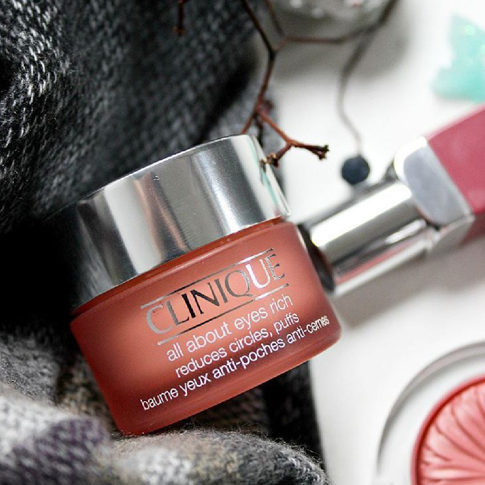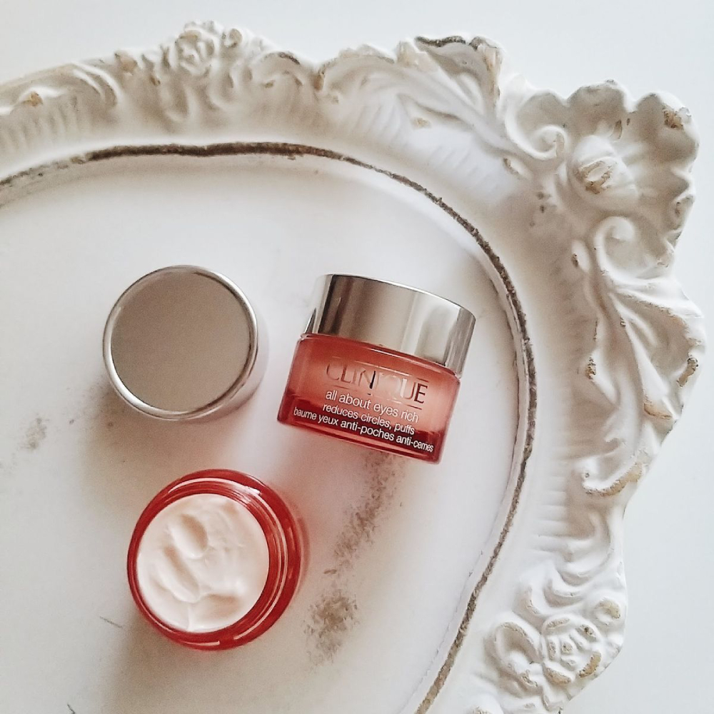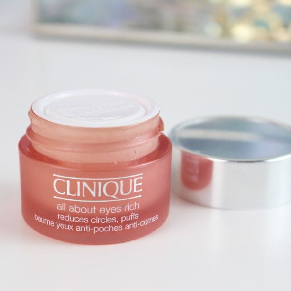 Description Later, puffy eyes. Clinique All About Eyes, Mini Travel Size, eye moisturizer hydrates delicate eye-area skin. Plus, this eye-puffiness reducer helps diminish the appearance of dark circles under the eyes. Choose from two eye-brightening cream formulas. All About Eyes lightweight formula is a refreshing eye gel-cream that hydrates and brightens. All About Eyes Rich is a nourishing eye care cream that soothes with creamy hydration. Did you know the skin around your eyes is thin, delicate, and susceptible to damage? It can show signs of fatigue and aging. Tap on All About Eyes Eye Cream twice a day to hydrate and reduce the look of puffiness over time.