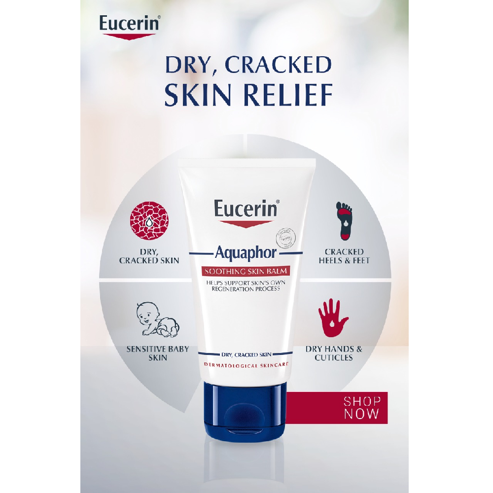 - REPAIRS DRY, CRACKED AND IRRITATED SKIN: Eucerin Aquaphor Soothing Body Skin Balm is a water-free ointment that helps repair dry to very dry, cracked and irritated skin to provide immediate relief and the SOS care it needs.