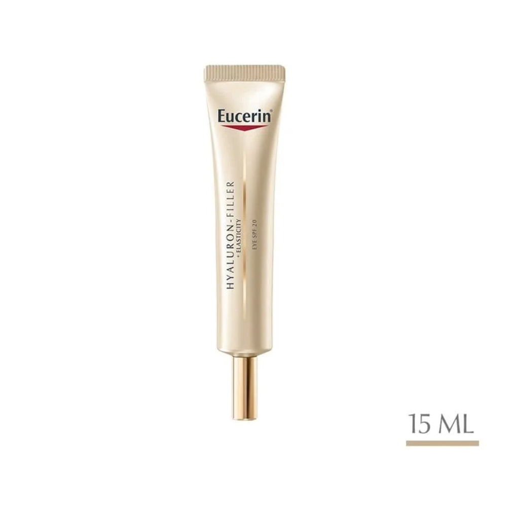 Hyaluron Filler + Elasticity Eye Care An Anti-aging Eye Cream for Mature Skin. An anti-aging eye cream that plumps up deep wrinkles and improves skin’s elasticity. The unique formula delivers multiple anti-aging benefits. With Eucerin’s innovative blend of both high and low molecular Hyaluronic Acid and Arctiin (an active proven to accelerate collagen renewal in skin cells) it visibly plumps up even deep wrinkles for smoother, firmer skin around your eyes and a radiant, awake look. The eye cream also contains SPF 20 and a UVA filter for added protection against rays that can deepen wrinkles and speed up the skin aging process. It is fragrance-free, non-comedogenic, ophthalmologically tested and suitable for use with contact lenses.