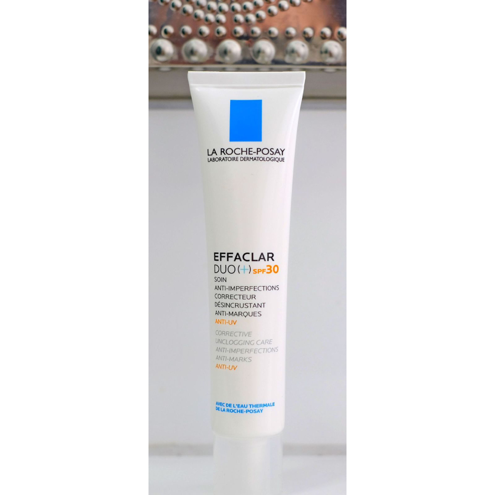 -La Roche-Posay Effaclar Duo (+) SPF30 is a dual-action acne treatment and moisturizer that reduces blemishes, corrects imperfections, unclogs pores, and protects skin from UV rays.