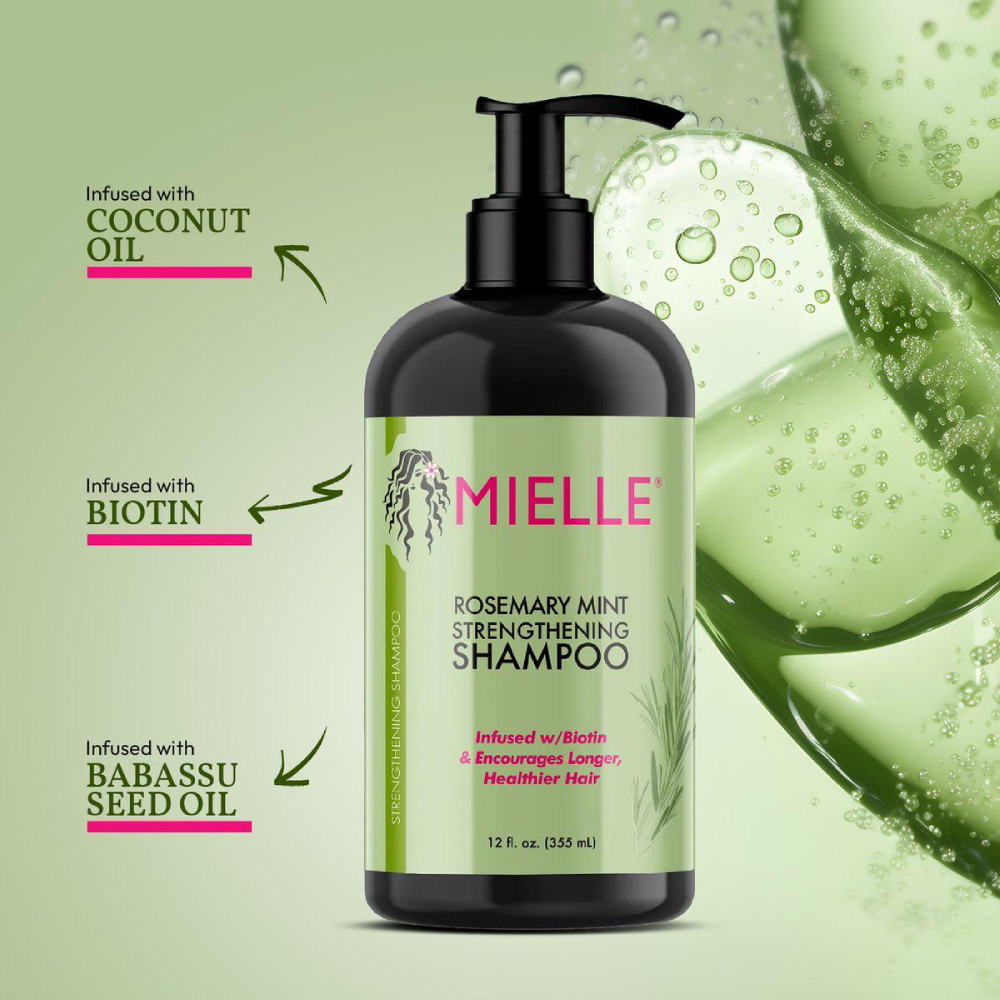 Mielle’s Rosemary Mint Strengthening Shampoo was developed to gently cleanse your hair while providing key nutrients.