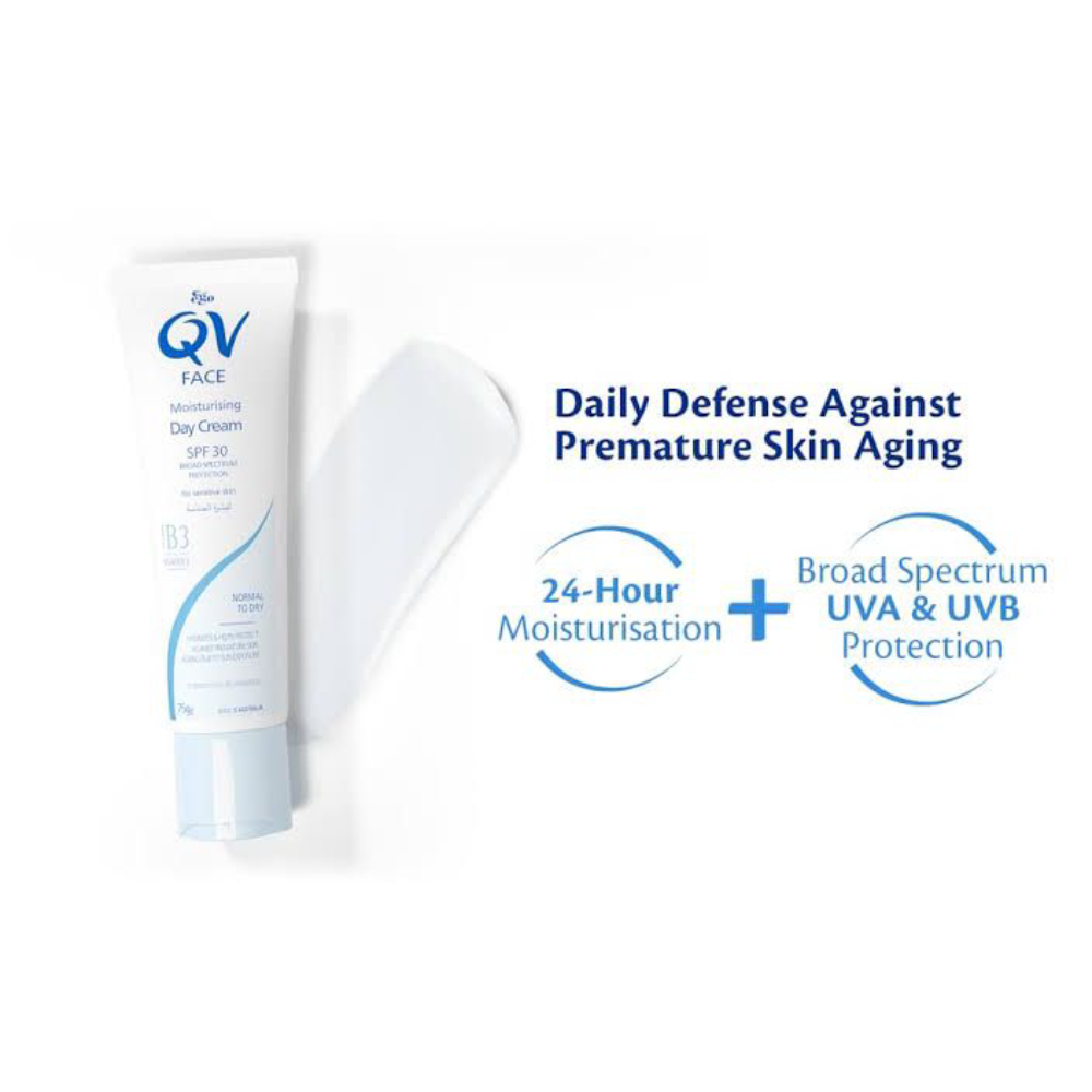 Ego QV Face Moisturising Day Cream is a protective facial moisturising cream that has the added benefit of SPF 30 to help prevent skin damage from sun exposure. Gently formulated for daily moisturising, QV Face Moisturising Day Cream also offers sun protection to help buffer your skin against damage and premature ageing by the sun’s UV rays. QV Face Moisturising Day Cream provides hydration with a non-greasy formula that is soft and easy to apply. It is ideal for use under make-up and it helps to provide your skin’s daily moisture. Ego QV Face Moisturising Day Cream gives enough moisture to make the upper layer of skin look young and fresh. Regular moisturization of the skin using Ego QV Face Moisturising Cream helps your skin to repair itself and minimize any damage. Regular care with cleaning and moisturizing properly can keep your face looking young and your skin supple.
