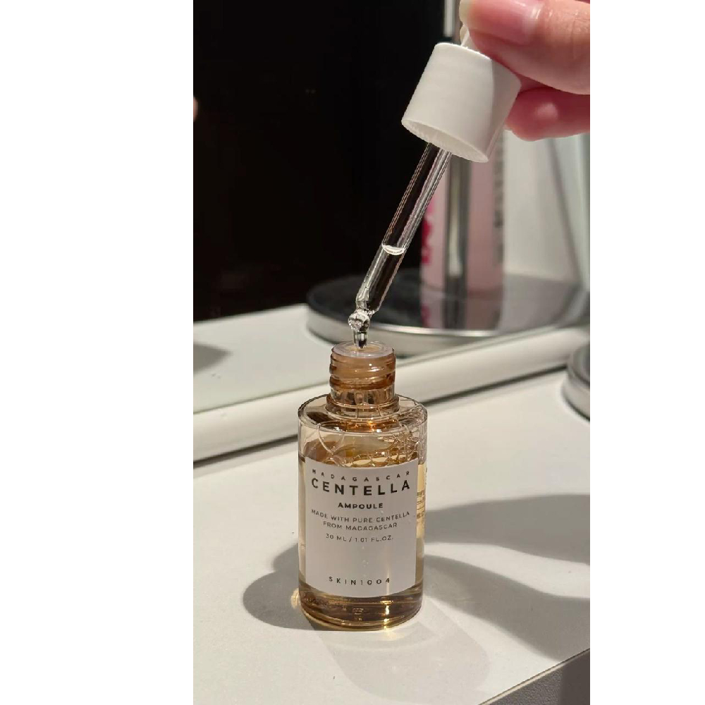 - SKIN1004’s signature ampoule with a light watery texture and non-sticky formula